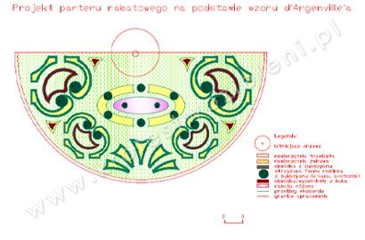 Projekt zagospodarowania zieleni przed barokowym dworkiem, utrzymany w stylu barokowym.